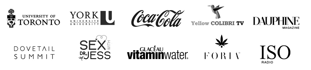 She has collaborated with organizations such as Coca-Cola Vitamin Water XXX, University of Toronto, York University, and Foria, creating programs and delivering public speaking engagements.
